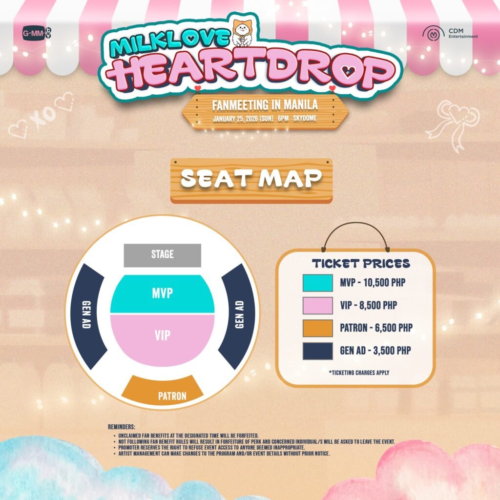 For those planning to attend, tickets are available via SM Tickets, with several tiers available to accommodate different preferences. The MVP tier is priced at ₱10,500 and includes a 2:4 group photo, sound check access, a hi-touch session, and an official poster.
